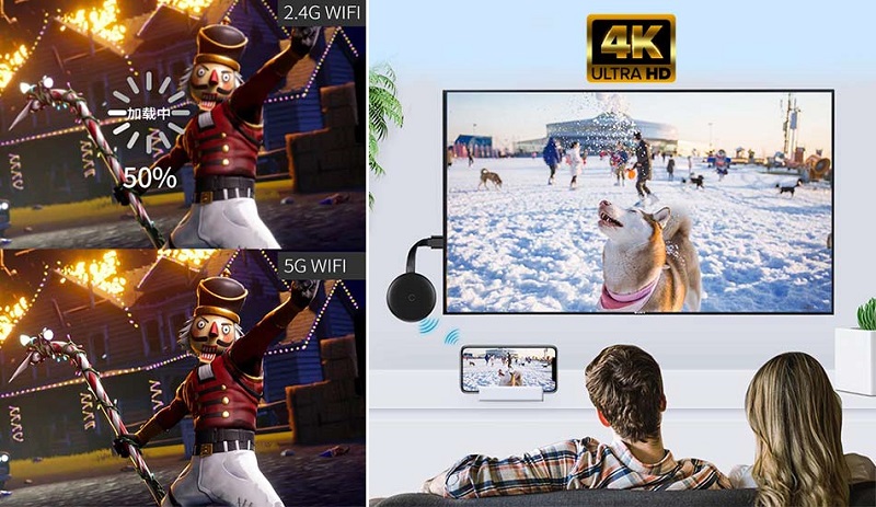این مورد کمی تخصصی تر از دو مورد قبل است و به همین خاطر افراد زیاد به آن توجه نخواهند کرد، اما می تواند تاثیر خوبی در ایجاد یک اتصال پایدار و بدون قطعی بین دانگل HDMI و موبایل یا لپ تاپ داشته باشد. اگر بخواهیم به طور ساده توضیح دهیم تقریبا تمام دانگل های HDMI از دو شبکه وای فای 2.4 و 5 گیگاهرتز برای اتصال با دستگاه های شما استفاده می کنند که شبکه 2.4 گیگاهرتز برد بیشتر با قدرت اتصال پایین و شبکه 5 گیگاهرتز برد کم با قدرت اتصال و سرعت بالا دارد.