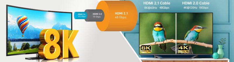 پرچمدار کابل های HDMI و جدیدترین عضو این خانواده HDMI 2.1 می باشد. این کابل پیشرفت چشمگیری نسبت به نسل های قبل خود داشته و اکنون می تواند ویدئوهای ۴K را در نرخ به روز رسانی ۱۲۰ هرتز به نمایش در بیاورد. HDMI 2.1 همچنین برای پخش ویدیوهای ۸K در نرخ به روز رسانی ۶۰ هرتز نیز کارایی دارد و می تواند برای استفاده در باکیفیت ترین نمایشگر ها نیز کارایی داشته باشد. با این وجود این پایان ماجرا نیست و کابل های HDMI نسخه ۲٫۱ از همین حالا برای پخش محتوای ۱۰K آمادگی دارند.