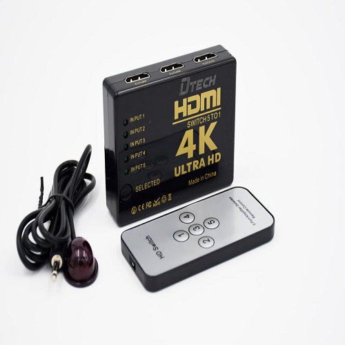سوئیچ 1 به 5 پورت HDMI مدل 4K501 برای اشتراک گذاری 5 سیستم پخش کننده ی تصویر مانند دوربین، کنسول بازی، دی ودی پلیر، PC و … که از پورت HDMI بهره می برند به یک نمایشگر ( تلویزیون و یا پروژکتور) می باشد. این سوئیچ از کیفیت 4K با رزولوشن 25 الی 30 هرتز بهره می برد. در واقع سوئیچ HDMI 5 پورت زمانی مورد استفاده قرار میگیرد که بخواهید از چند دستگاه شبیه هم در موقع لزوم بدون تعویض کابل استفاده کنید.