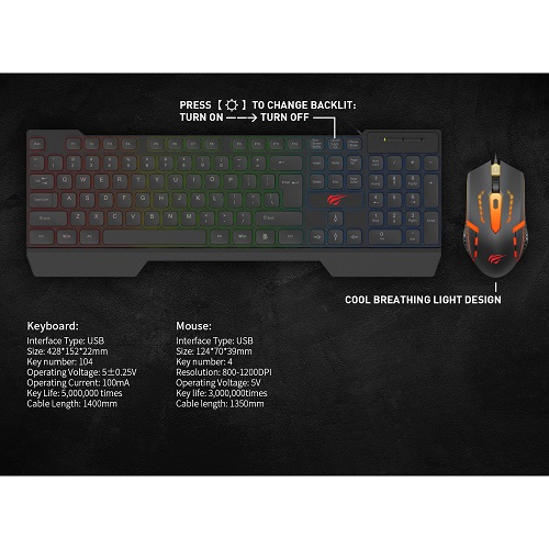 سایر مشخصات کیبرد موس:HAVIT | دارای نور رنگی تک حالته | قابلیت خاموش کردن نور RGB | کم صدا بودن کلیدها | در زیر کیبورد منافذی وجود دارد که باعث می شود در صورت ریختن آب از زیر آن خارج شود | سازگار با سیستم عامل‌های ویندوز، مک، لینوکس | ساخته شده از پلاستیک با دوام