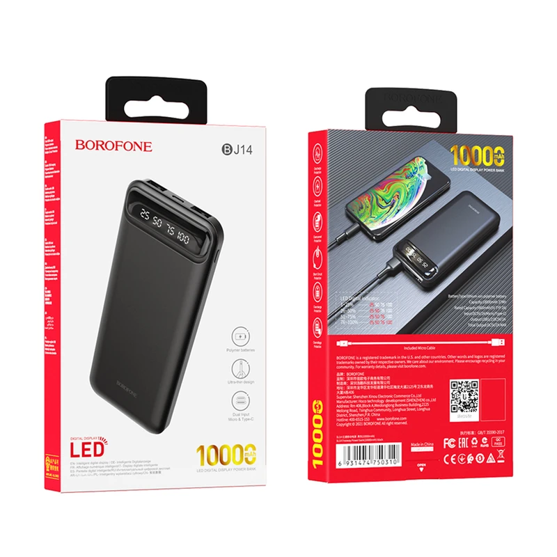 تلفن های همراه هوشمند هر روزه با مدل های متنوع، در ابعاد مختلف و با صفحه نمایش های متفاوت و تراشه های جدید وارد بازار موبایل می شوند.باتری تعبیه شده در تلفن های همراه با وجود رشد فناوری ها و سخت افزار ها همچنان نیازمند شارژ شدن حداقل یک بار در روز می باشند.با پیشرفت تکنولوژی و رشد فناوری ها پاوربانک ها با باتری لیتیوم پلیمری در ابعاد و مدل های مختلف بر اساس مدل تلفن های همراه وارد بازار جانبی موبایل شده اند.پاوربانک BJ14 بروفون نسل جدید پاوبانک های موجود در بازار موبایل است . پاوربانک BJ14 بروفون دارای ظرفیت 10000 میلی آمپر ساعت با باتری لیتیوم پلیمری می باشد . پاوربانک BJ14 بروفون دارای 2 خروجی مدل با USB-A 5V/2A است که با داشتن قابلیت Intelligent Balance میتواند همزمان چند دستگاه هوشمند را به صورت سریع شارژ کند. یکی از ویژگی های منحصر به فرد پاوربانک BJ14 بروفون داشتن 2 ورودی مدل MICRO-USB 5V/2A و USB-C برای شارژ پاوربانک می باشد که باعث سریع شارژ شدن پاوربانک می شود. پاوربانک BJ14 بروفون دارای نمایشگر LCD برای نمایش میزان شارژ پاوربانک میباشد که با هر بار شارژ کردن دستگاه هوشمند به صورت کامل 25 درصد شارژ کسر می شود. جنس بدنه پاوربانک ABS+PC است که بسیار مقاوم در هر شرایطی می باشد . وزن پاوربانک BJ14 بروفون 224 گرم است که بسیار سبک و قابل حمل می باشد .پاوربانک BJ14 بروفون می تواند یک همراه مطمئن در کنار کاربران باشد تا همیشه خیال آسوده ای از شارژ بودن، باتری تلفن همراه خود داشته باشند .