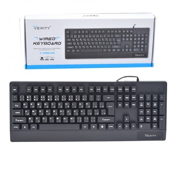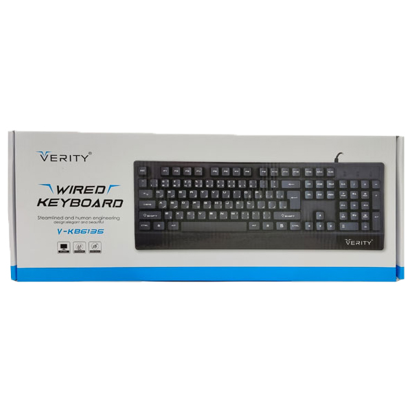 کیبورد سیم دار وریتی V-KB6135 به صورت با سیم و با استفاده از کابلی 1.5 متری با روکش TPE که در سر آن کانکتور USB قرار دارد به کامپیوتر شما متصل می گردد. این صفحه کلید دارای ۱۱۹ کلید فیزیکی حاوی کلیدهای مولتی مدیا و حروف فارسی حک شده بر روی آنهاست. این کلید ها شامل 104 دکمه ساخته شده و 15 کلید میانبر است که سرعت کار را برای شما بالا می برد.